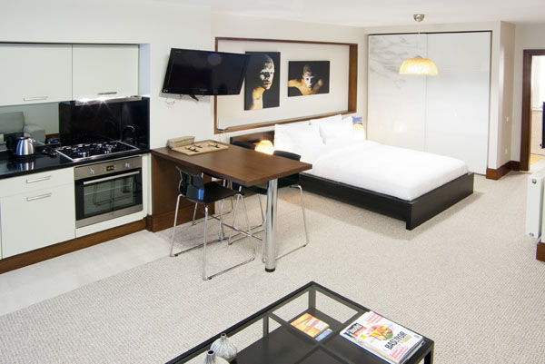 Stüdyo dairelerimizde mutfak, yatak odası,